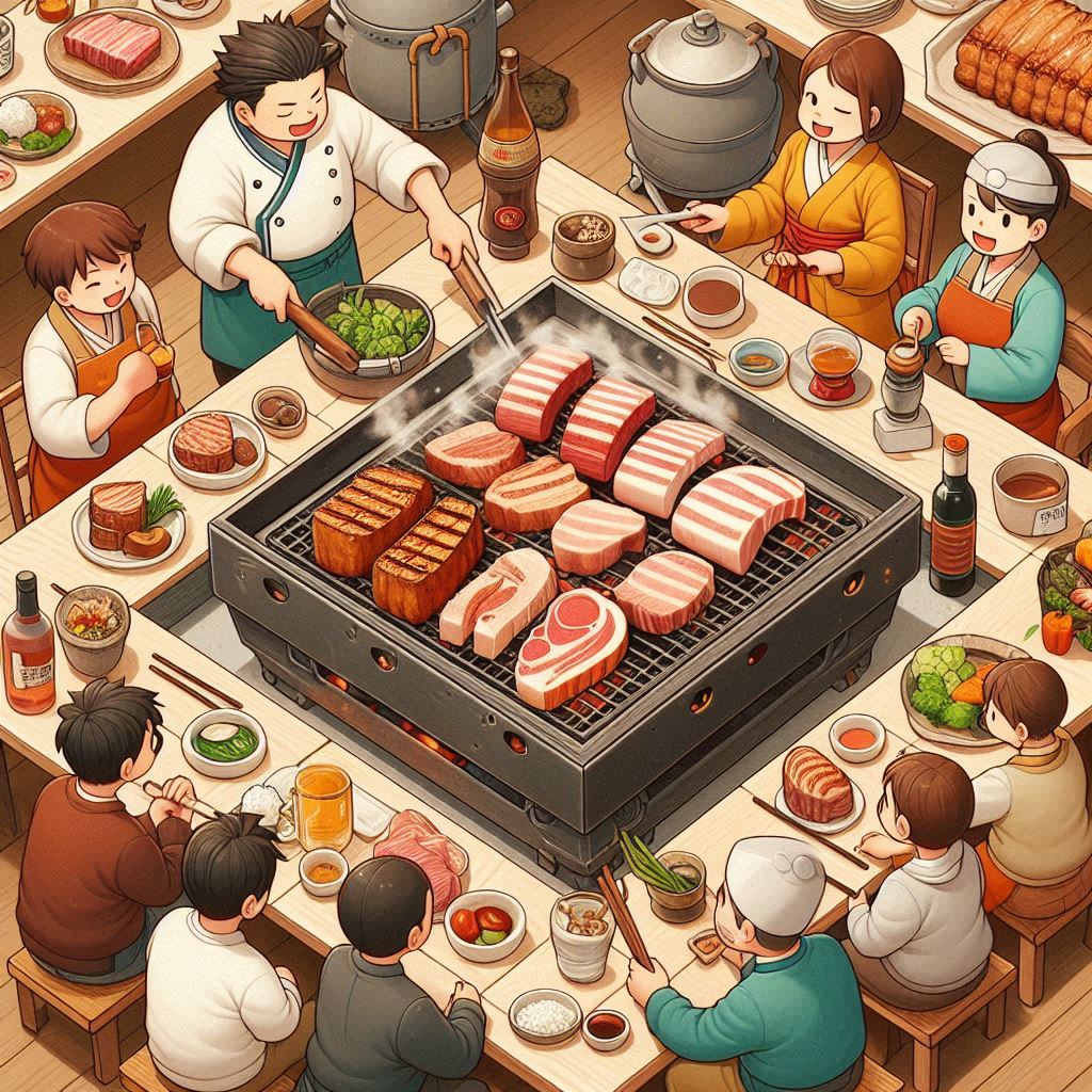 특징: 테이블에서 직접 숙성 삼겹살을 구워 먹는 방식
